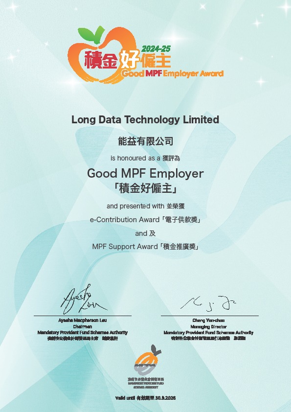 (Hong Kong, November 27, 2025) The Mandatory Provident Fund Schemes Authority (MPFA) has recognized Long Data Technology Limited with the prestigious “Good MPF Employer 2025” award, underscoring the company’s commitment to robust employee welfare and talent investment.
